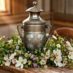 Les designs les plus appréciés incluent l’urne mariage bois gravée, avec des motifs champêtres ou floraux subtils. Détails en dentelle, rubans de macramé et associations de fleurs séchées apportent une touche bohème authentique. Certains modèles misent sur une forme épurée et romantique, en jouant sur la transparence du verre ou la simplicité du bois pour s’adapter à chaque célébration.